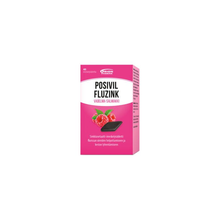 Posivil FluZink sitruuna-lakritsi, veriappelsiini ja mustaherukka -imeskelytabletit ovat imeskeltäviä sinkkiasetaattitabletteja. Sinkki muodostaa suojaavan kalvon suun ja nielun alueelle, kun se imeskellään noin joka toinen tunti. Suuta ei kannata heti imeskelyn jälkeen huuhtoa vedellä, jotta sinkki ehtii suojata suun ja nielun pintaa.